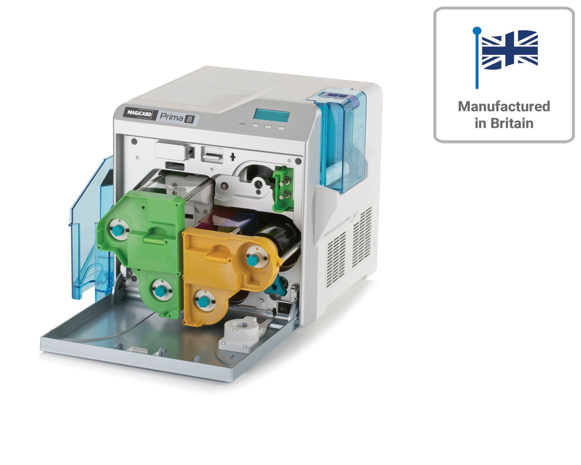 The Magicard Prima8 retransfer ID card printer inherits the most successful features and outstanding print quality from its predecessor, the Magicard Prima4. The Prima8 uses a wide colour spectrum to create photo-like images for accurate identification. With reliable print results and additional encoding options, your customers can produce a high-resolution glossy image, printed right over the edge of the card.