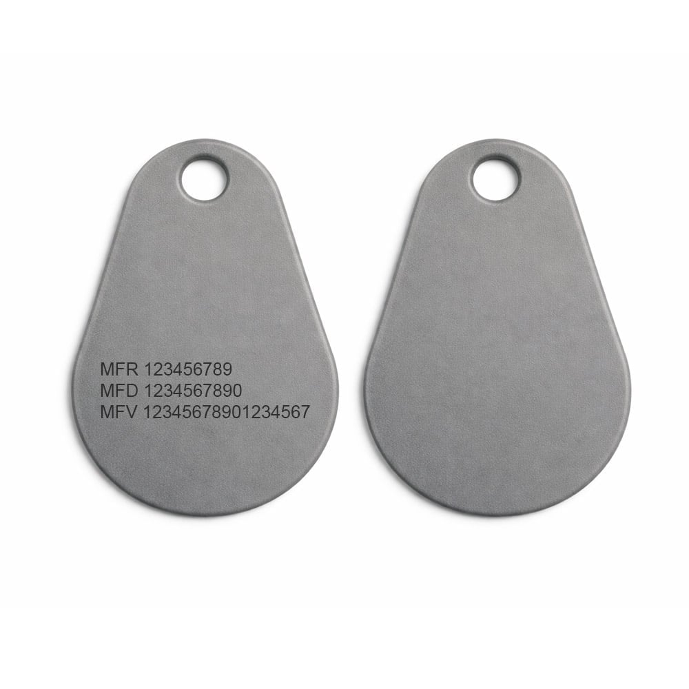 Här med standardnummer graverade på Taggen för i princip samtliga säkerhetssystem.