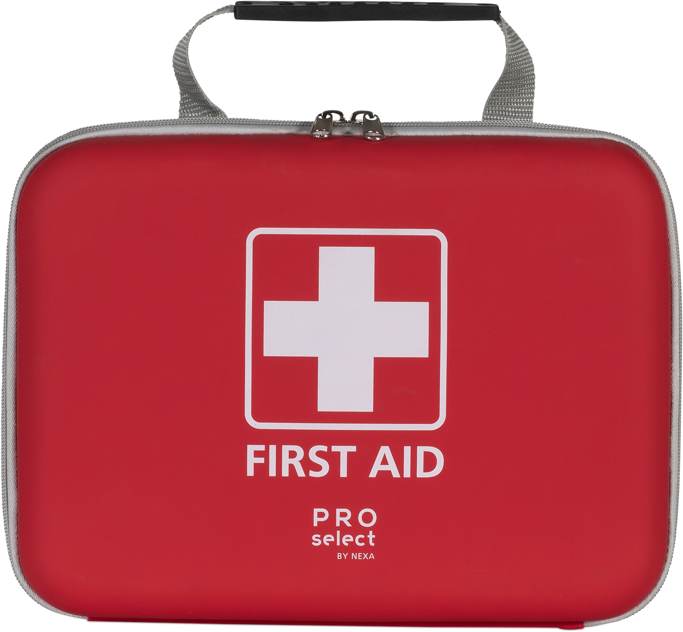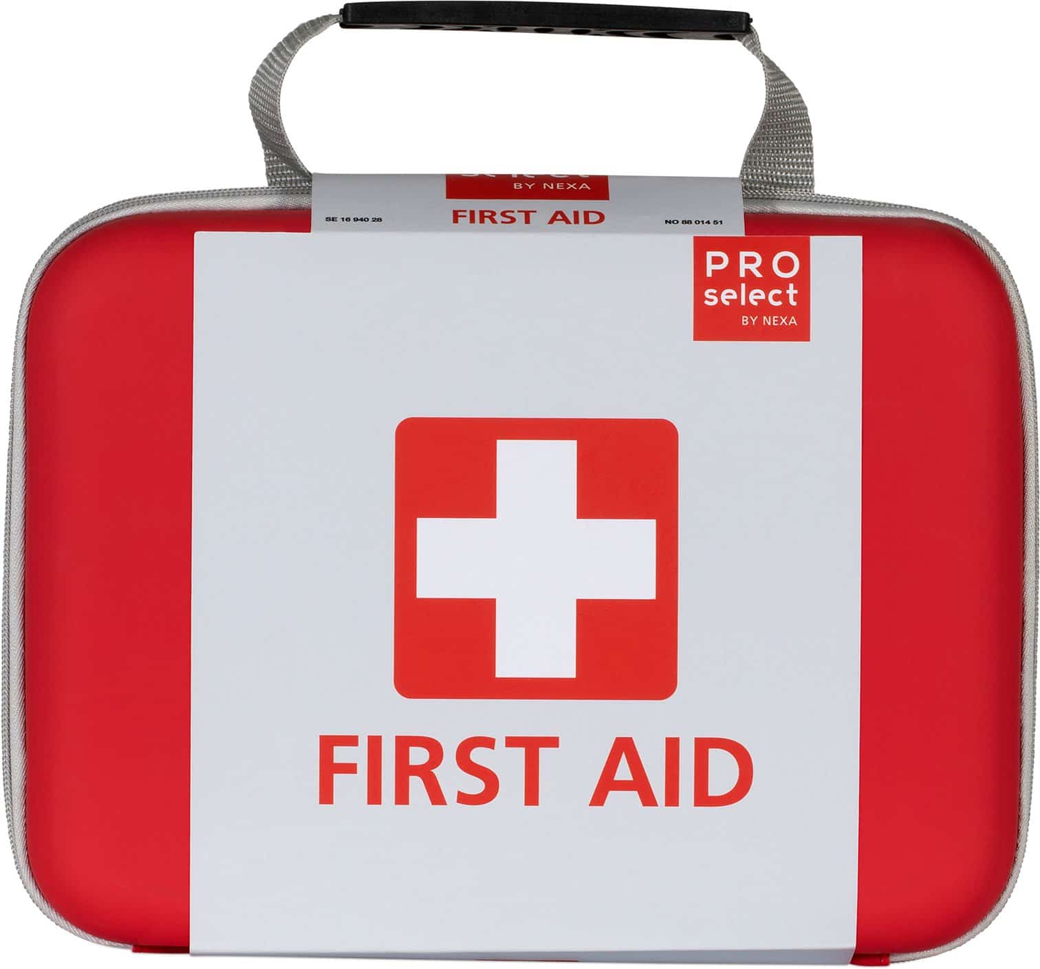 “First Aid Large Pro Select” -komplett. Första hjälpen när skadan är framme. Väskan innehåller 65 delar.Väskan är tillverkad i ett slitstarkt materialsom tål både fukt och smuts. Det gummeradehandtaget gör den lätt att bära och smidig atthängas upp på en krok.