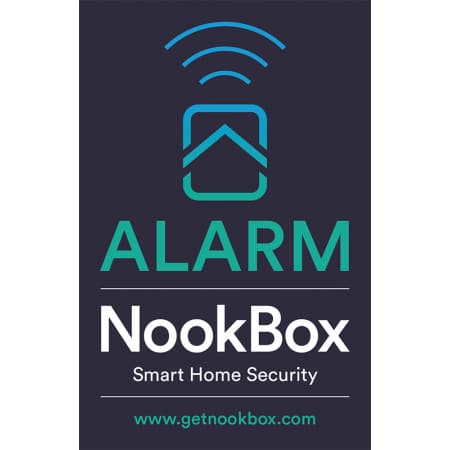 Larmdekal för NookBox inbrottslarmsystem, självhäftande och dubbelsidig, att fästa på exempelvis fönster och dörrar. Tryckt på båda sidor för visning både från in- och utsidan.