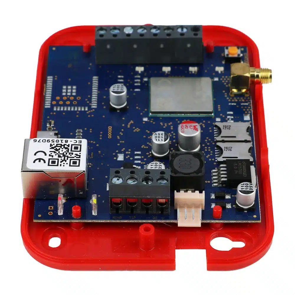 Med stöd för Ethernet och 4G/LTE kan enheten upprätthålla larmkommunikation även vid nätverksbortfall – perfekt för byggnader, industri och brandcentraler.