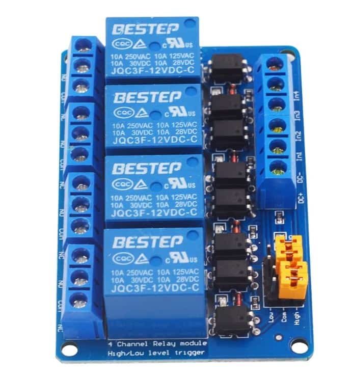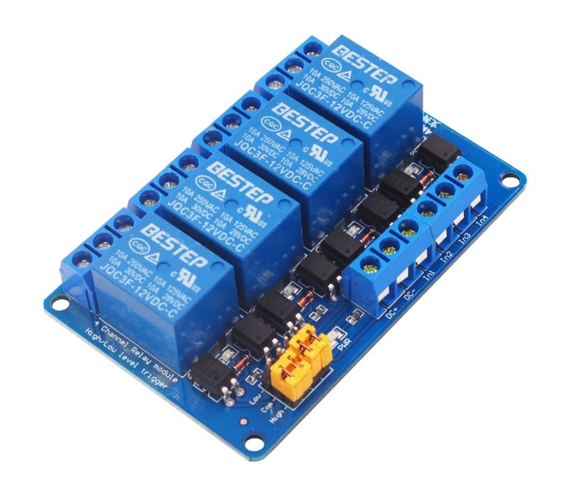 Relä 24V 4-kanals med hög/låg nivåstyrning