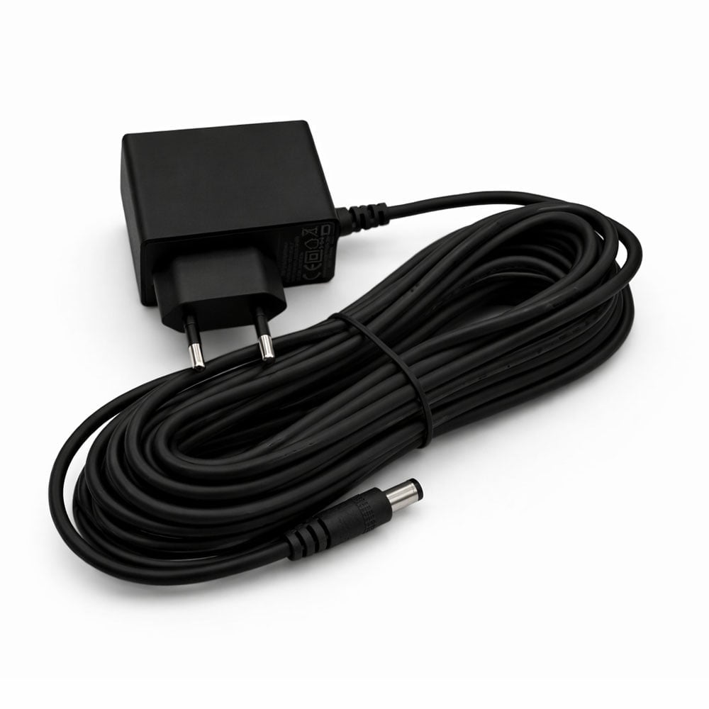 12V strömadapter med 5 meter kabel för stabil strömförsörjning. Passar larm, knappsatser och annan säkerhetsutrustning som kräver 12V DC. Levereras med EU-kontakt och färdigmonterad DC-plugg.
