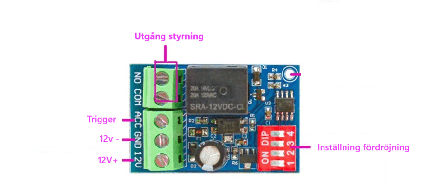 Tidsrelä 12V C/NO tillslagsfördröjt relä 0,3 – 60 sekunder